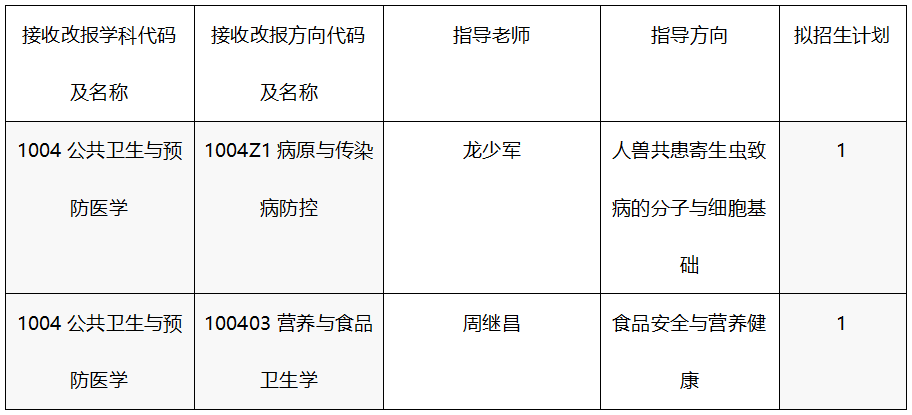 备注:龙少军教授的招生指标为联合培养专项,由我院龙少军教授与广东省农业科学院孙铭飞研究员联合培养。