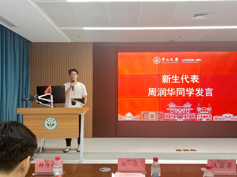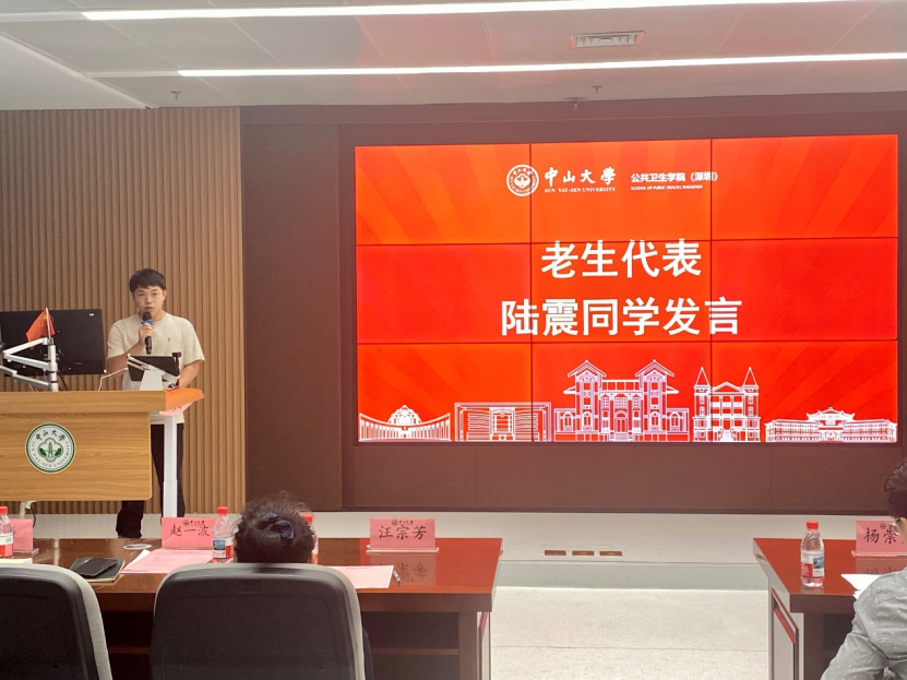 2022级博士生、国家奖学金获得者陆震作为老生代表分享了三点经验:多向导师学习锤炼科研能力;保持好奇与韧性,聚焦科学问题本质;积极参与国际会议与跨学科合作。他建议新生保持阅读思考,不畏失败,以专业能力和奉献精神守护国民健康,其发言引发了新生共鸣。2025级硕士新生周润华结合本科经历,分享了其对公卫事业的深刻感悟,表示学院的平台与师长指导坚定其深造决心,未来将以民生健康为目标深耕领域、融入团队,努力产出有价值成果,并呼吁同学们以“懂理论、强实践、有担当”为目标成长成才,其激情发言展现了新生对学术的憧憬。
