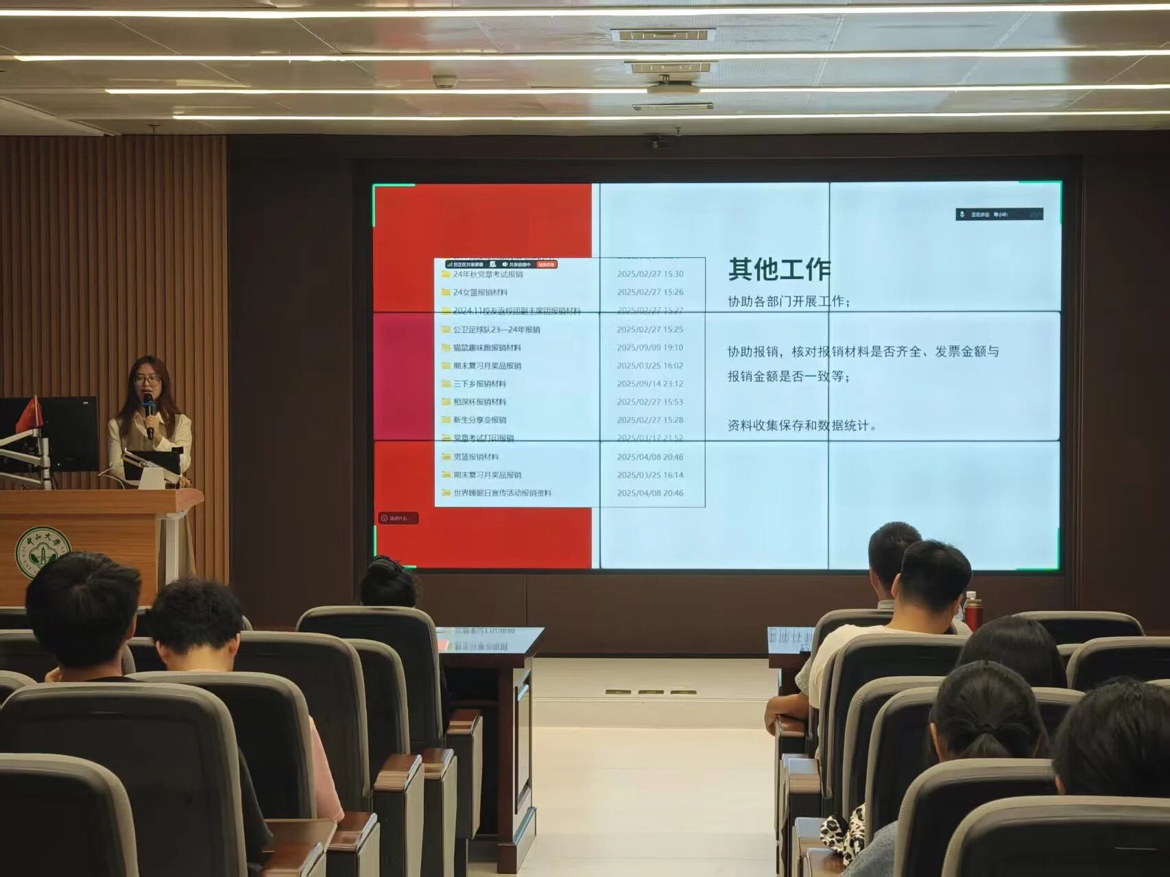 随后,第七届学生会主席团成员王雅进行年度工作汇报,报告全面回顾了过去一年内学生会在思想引领、学术活动、文体实践等方面的工作成果与问题,对新一届学生会的建设提出了期望。