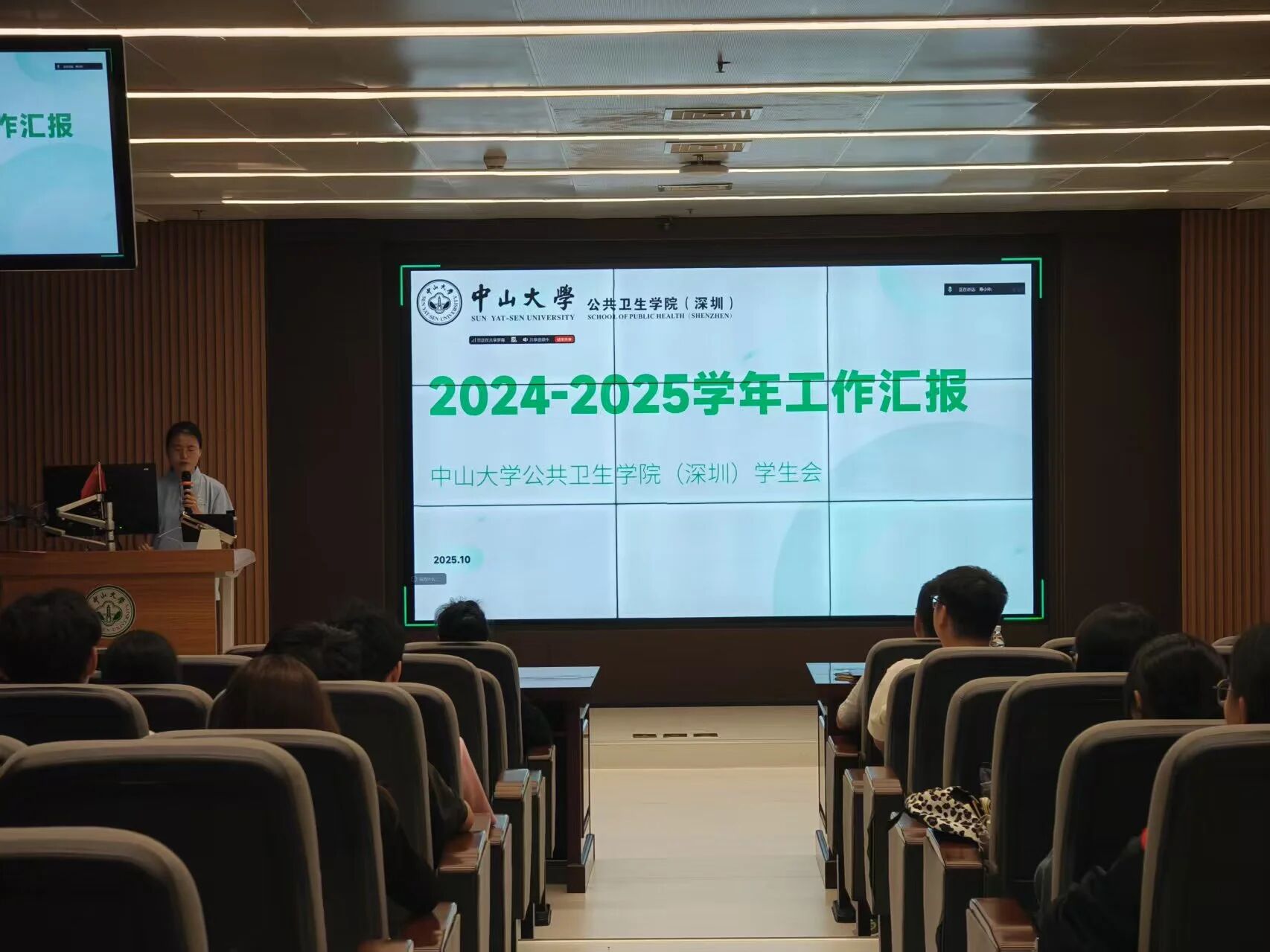 2025年10月20日晚,公共卫生学院(深圳)第八届学生代表大会于深圳校区医学园西1-101召开。院党委汪宗芳书记、副书记赵一波,本科生辅导员黄琳,院团委、学生会代表及90余名本科生代表出席本次会议。会议由洁吾海尔和张辰主持。