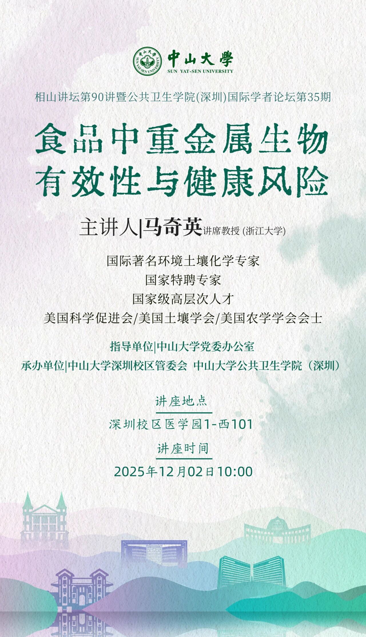 活动预告 | 相山讲坛第90讲:食品中重金属生物有效性与健康风险