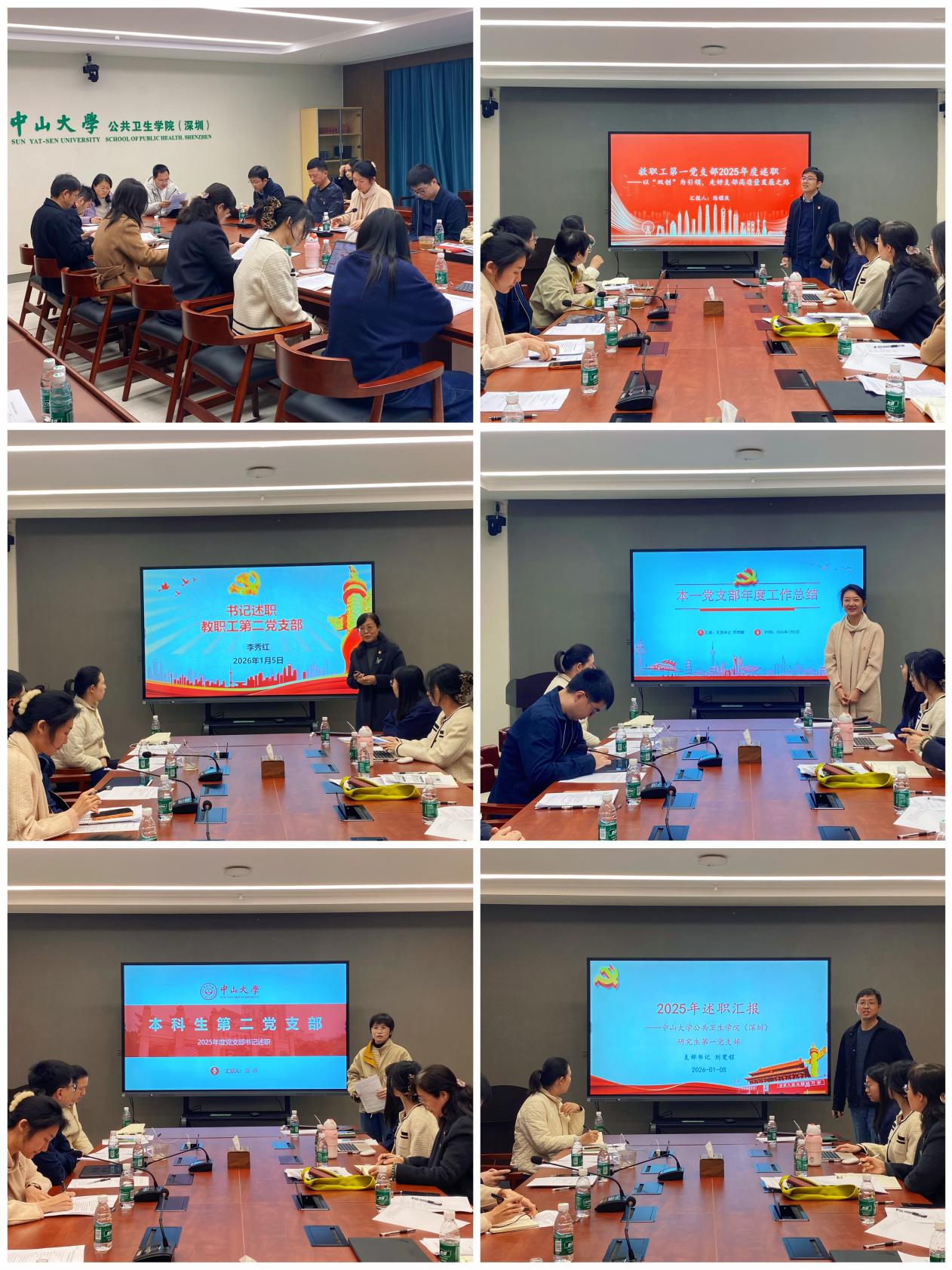为深入学习贯彻习近平新时代中国特色社会主义思想,全面总结过去一年学院党建工作成效,夯实支部战斗堡垒作用,谋划新一年党建工作蓝图,2026年1月5日下午,公共卫生学院(深圳)党委在医学园一栋西205会议室召开2025年度党支部书记述职评议考核大会。学院党委书记汪宗芳、副书记赵一波、全体党支部书记、党务秘书及部分支委参加述职大会。会议由汪宗芳主持。
