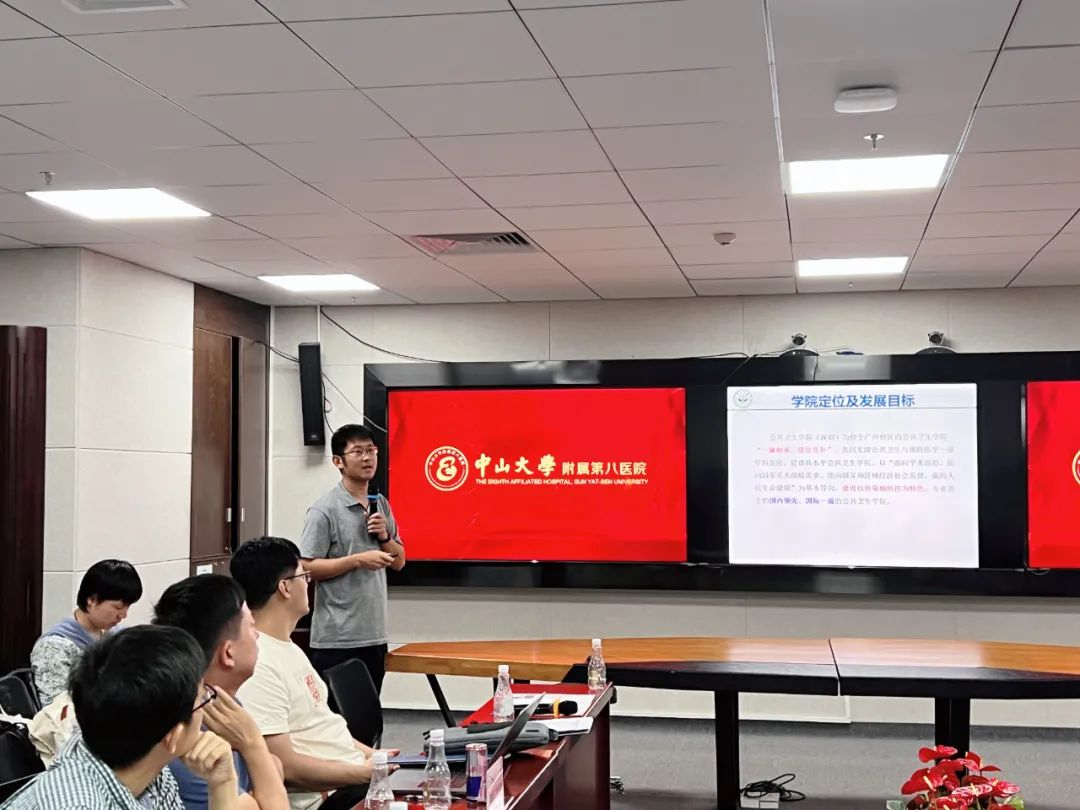 在科研合作交流环节,公共卫生学院(深圳)副院长杜向军、附属第八医院教职工第三党支部副书记武双鑫分别介绍了各自单位的基本情况、科研平台、科研方向等,并就病原与传染病防控研究、化学污染物暴露与心血管疾病的关联、人群疫苗效果研究评价、产前诊断与围产期疾病等方面的合作展开交流。
