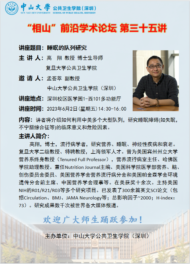 【学术论坛-预告】公共卫生学院(深圳)“相山”前沿学术论坛第三十五讲