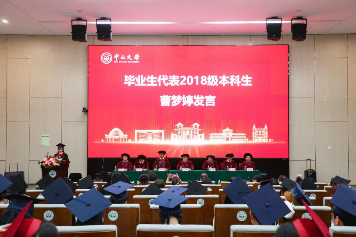 汪宗芳书记宣读孙中山先生毕业训词,全体毕业生起立聆听,并齐声回应“谨遵教诲”。接着,陈耀庆教授带领全体毕业生重温了中山大学医学生誓词,同学们的宣誓铿锵有力,掷地有声,表达了对投身于祖国卫生健康事业的坚定信念。