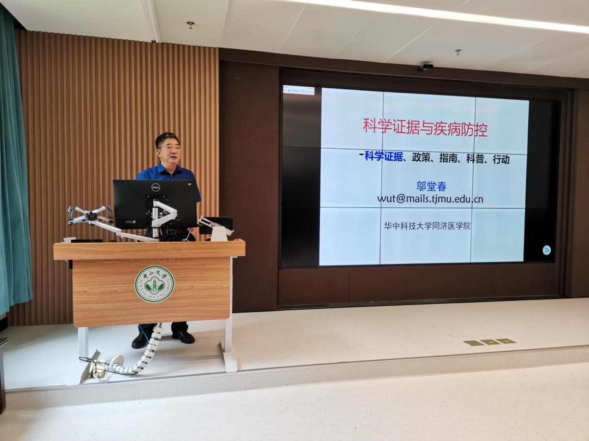 2023年6月29日上午,中山大学公共卫生学院(深圳)成功举办了院士大讲堂第一讲,地点位于医学园1-西101多功能厅。本次学术论坛特邀华中科技大学同济医学院院长邬堂春院士作为主讲嘉宾,分享主题为:“科学证据与疾病防控”。公共卫生学院(深圳)院长钱军教授主持了此次学术论坛。学院汪宗芳书记、副院长杨燕教授(本次讲座的邀请人)、副院长杜向军教授、副书记赵一波、副院长陈耀庆教授、孙彩军教授、孟荟萃副教授、向建帮副教授/青年研究员和刘苗助理教授等教师,以及相关专业的研究生和部分本科生参与了此次学术论坛。
